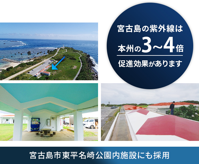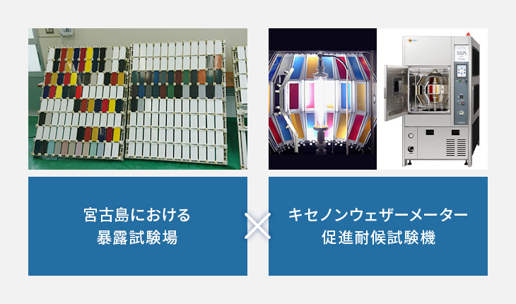 紫外線が強烈な宮古島にて、第三者機関による10年間の屋外暴露試験において長期間耐候性を維持することが実証されています。