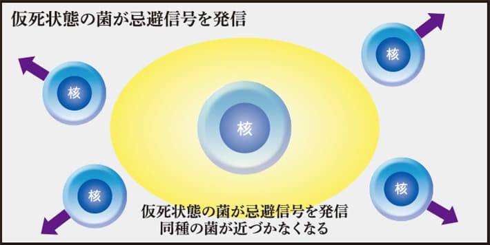 外套膜を破壊された菌は、たんぱく質やDNA、SH基等の剛性を阻害されてしまい、仮死状態となります。その後も、生育に必要な栄養分等を得られなくなるため、やがて時間をかけながら死滅します。